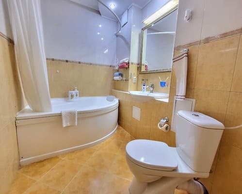 В каждой квартире предусмотрен раскладной диван, на котором можно разместить 1 взрослого человека или 2 детей. В зависимости от типа меблировки дополнительные спальные места могут располагаться в гостиной или на кухне. Для маленьких детей предлагаются детские кроватки, а также в наличии есть стульчики для кормления, ванночки для купания и другие детские принадлежности. Информацию о стоимости дополнительных мест и услуг уточнять при бронировании.