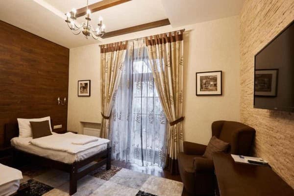 В историческом Киеве, всего в 10 мин. ходьбы от Ж/Д вокзала расположился мини-отель «Petrani Central». Отличительной особенностью отеля является тихий, живописный район для отдыха. Номерной фонд гостиницы представлен номерами разных категорий. Все они с современным ремонтом, удобной мебелью и необходимой техникой. Доступ к сети Интернет предоставляется бесплатно. Для собственного транспорта имеется парковка. Внимание: курить разрешено строго в отведенном месте. В шаговой доступности от «Petrani Central» находятся кафе, рестораны, магазины, к центральной части столицы всего 15 мин езды. От отеля к Ж/Д вокзалу всего 800 м, к аэропорту 38 км, к автостанции 7,9 км.